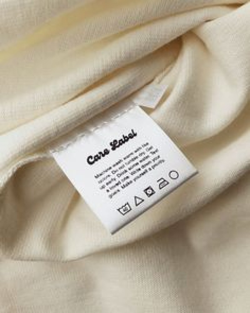 A care label is a label that is attached to a garment or textile product which provides information on how to properly care for and maintain the product. The care label typically includes symbols or written instructions indicating the appropriate washing, drying, ironing, and dry-cleaning methods for the product. This information is important for ensuring that the product remains in good condition, retains its shape and color, and does not become damaged during cleaning.