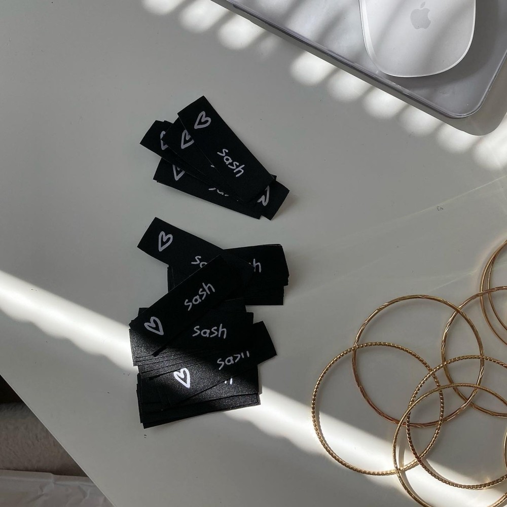 A woven label is a type of label that is made by weaving threads together using a loom. Woven labels are commonly used in the textile and apparel industry to provide branding, care instructions, and other information on garments or other textile products. They can be made in a variety of materials, including cotton, polyester, nylon, and satin, and can be customized with a range of colors, fonts, and designs to match the brand identity of the product. Woven labels are typically durable and can withstand repeated washing and wear, making them a popular choice for clothing manufacturers and designers.